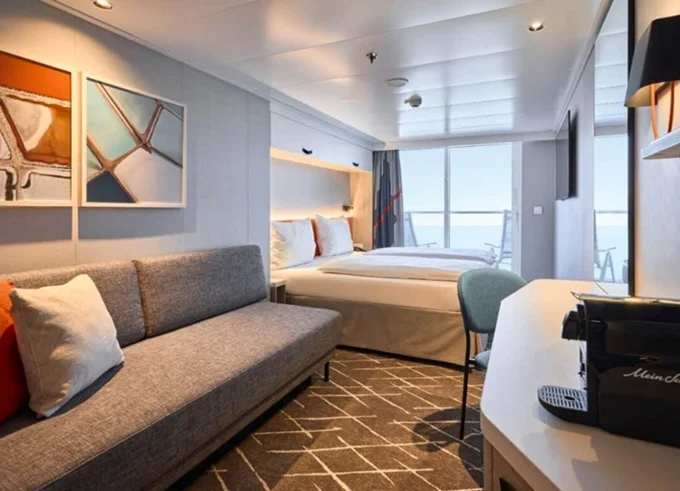 SKAO - Schöne Aussicht Suite 39 m² + balkón 10-12 m² s ležadlami a hojdacou sieťou. 7-14. paluba. Max 4 osoby. Výhody Suite. 4 198 € 2 099 € za osobu